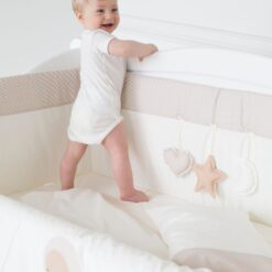 - Bumbac Moale: Realizat din bumbac de înaltă calitate, acest set de lenjerie adaugă o atingere delicată la orice pătuț de bebeluș. Materialul este moale la atingere, răcoros în timpul verii și cald în timpul iernii, menținând bebelușul confortabil în orice sezon.