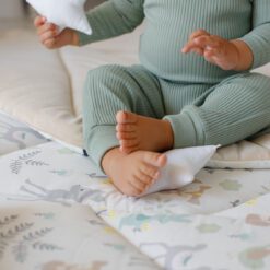 Setul este potrivit pentru bebeluși din primele zile de viață, croiul produsului este conceput pentru a fi comod celui micuț, pentru a fi ușor schimbat. Forma de la gît, face ca acesta să fie dezbrăcat cu ușurință. Pantalonii avînd baza înaltă, se țin bine de talia bebelușului.